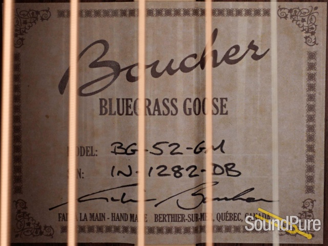 Boucher delivers another stunning example of what a dreadnought should look, play, and sound like. The torrefied mastergrade Adirondack spruce top is warm and open, while still providing all of the volume and power one would expect from Adirondack. The East Indian Rosewood adds in a bit of sweetness and lush overtone content that gives this guitar an unmistakably rich tone. This beauty has great bass response and an overall clarity in the higher frequencies that's sure to delight any picker. Robin Boucher's unbelievable craftmanship and world class attention to detail are on full display with this special Bluegrass Goose.