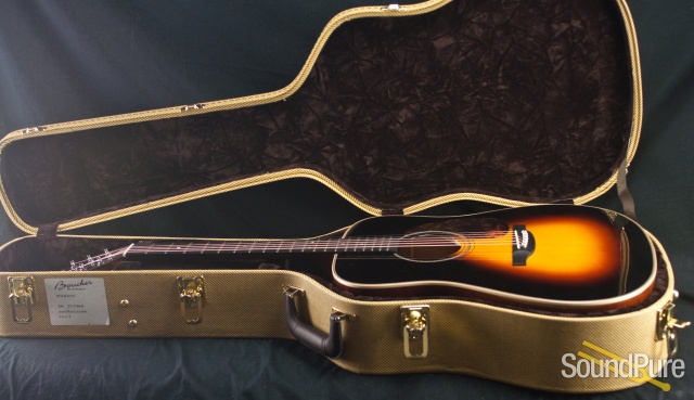 So, this is my dream dread. A stately sunburst on top of a powerful piece of Addy, hand picked from the Red Spruce forest that surrounds the Boucher workshop.