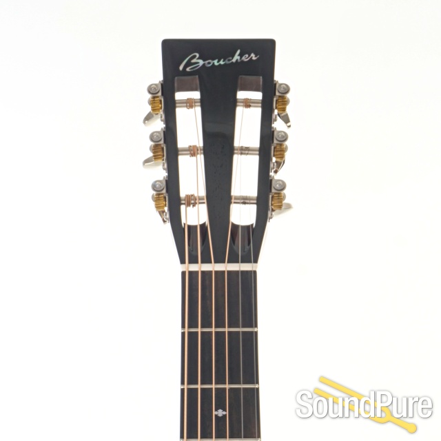 The Boucher CS-HG-44-BI is a beautifully expressive parlor guitar that pairs vintage-inspired design with exceptional tonal depth. Its torrefied Adirondack red spruce top delivers remarkable responsiveness and warmth, while the mahogany body adds a focused, woody character with rich mids and clear articulation. The compact 12-fret parlor size offers an intimate, comfortable feel, perfect for nuanced fingerstyle and relaxed playing sessions. Elegant koa binding and herringbone accents enhance its timeless visual appeal, while the ebony fingerboard provides a smooth, refined touch. Lightweight, resonant, and thoughtfully crafted, this Boucher is an inspiring instrument and a smart long-term investment for discerning players!
