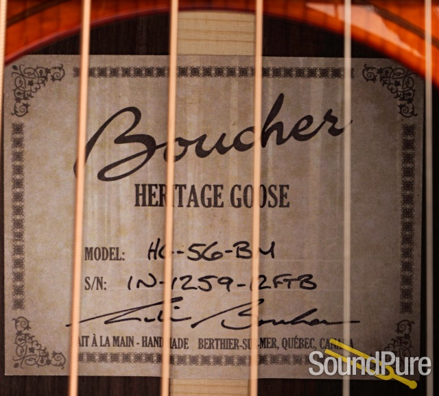 The Heritage Goose HG-56 is built using torrefied Adirondack spruce personally selected by Robin Boucher for both the bracing and the soundboard.
