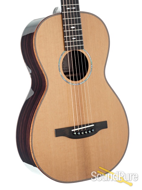 Power and precision to spare in a perfect package! This little beauty is louder and richer than plenty of OMs out there with an exacting clarity and note separation that eludes many guitars of any size. The look of that toasty Mastergrade top, herringbone purfling, and abalone rosette is nothing short of intoxicating. A gentleman's instrument that isn't afraid to get rough!