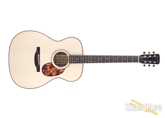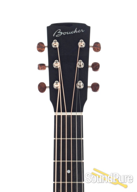 Everything you love about maple and nothing you don't. This private-stock offering from Boucher features a gleaming AAAA Adirondack spruce top complemented by stunning maple back and sides, flaunting prominent flame all around and dramatic sapwood figuring on the two-piece back. The combo of Addy and maple produces a bright yet even frequency response: tight low end, warm mids and pleasant treble. It's an expressive fingerpicker and very well-balanced as a strummer. A stunning guitar that sounds as good as it looks.
