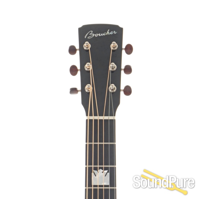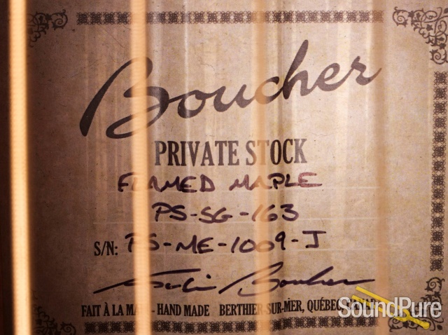 Whenever we get word from Boucher that he has some special sets of wood in stock with plans to make a limited run of instruments, our answer is always the same: "when can we get ours?" Robin gets the best of the best but this stuff is just on an other level entirely--we've never, ever seen Maple with such dramatic figuring/coloring! And rest assured, this isn't just easy on the eyes--the combination of Adirondack and Maple of this quality makes for an improbably lively, crisp voice, right out of the case. The Jumbo variant of this limited run has the biggest, clearest presence (volume, too, but more than that) of anything like it we've heard. An absolutely massive force that can sit clearly in a mix as well as it can back even the most powerful voices.