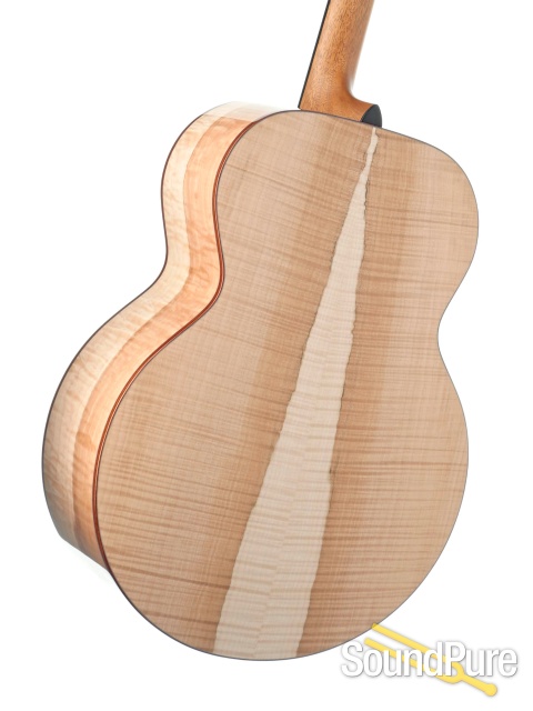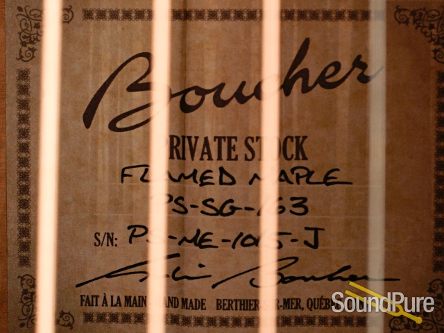 Whenever we get word from Boucher that he has some special sets of wood in stock with plans to make a limited run of instruments, our answer is always the same: "when can we get ours?" Robin gets the best of the best but this stuff is just on an other level entirely--we've never, ever seen Maple with such dramatic figuring/coloring! And rest assured, this isn't just easy on the eyes--the combination of Adirondack and Maple of this quality makes for an improbably lively, crisp voice, right out of the case. The Jumbo variant of this limited run has the biggest, clearest presence (volume, too, but more than that) of anything like it we've heard. An absolutely massive force that can sit clearly in a mix as well as it can back even the most powerful voices.
