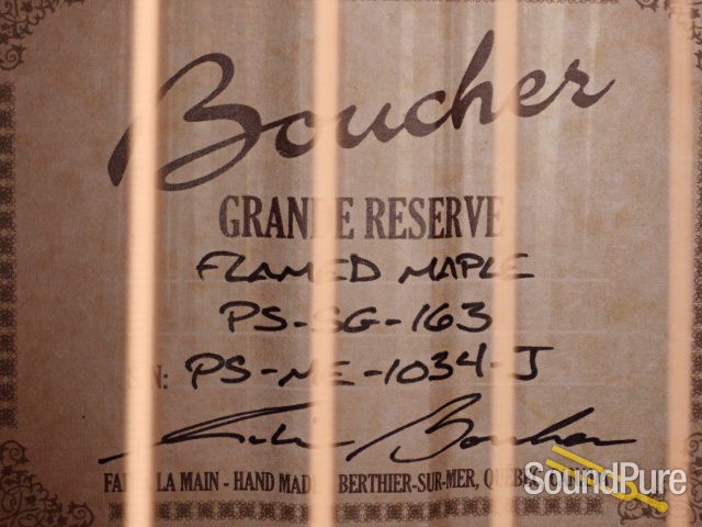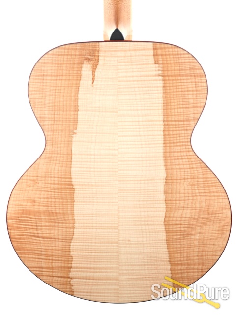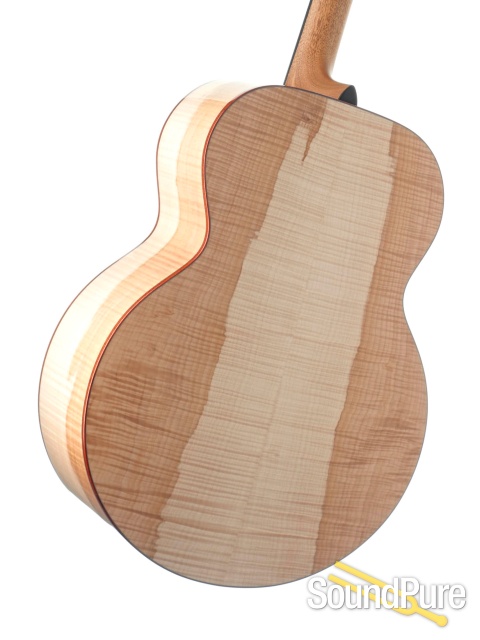 Whenever we get word from Boucher that he has some special sets of wood in stock with plans to make a limited run of instruments, our answer is always the same: "when can we get ours?" Robin gets the best of the best but this stuff is just on an other level entirely--we've never, ever seen Maple with such dramatic figuring/coloring! And rest assured, this isn't just easy on the eyes--the combination of Adirondack and Maple of this quality makes for an improbably lively, crisp voice, right out of the case. The Jumbo variant of this limited run has the biggest, clearest presence (volume, too, but more than that) of anything like it we've heard. An absolutely massive force that can sit clearly in a mix as well as it can back even the most powerful voices.