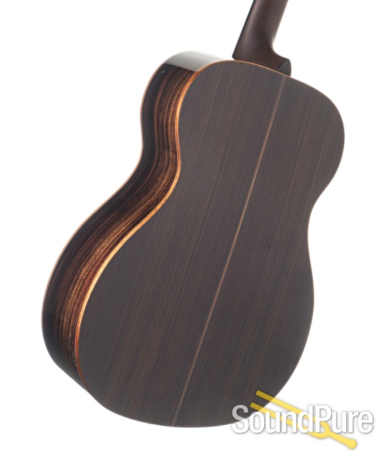 The OM Hybrids from Boucher never cease to amaze us. Bright and overtone rich with fast, comfortable, effortlessly playable necks without fail. The Master Grade and Vintage pack appointments are a formidable combo playing modern leaning koa binding and abalone rosette with vintage-style headstock design, tuners and capping it all of with a torrefied Master Grade Adirondack Spruce top!