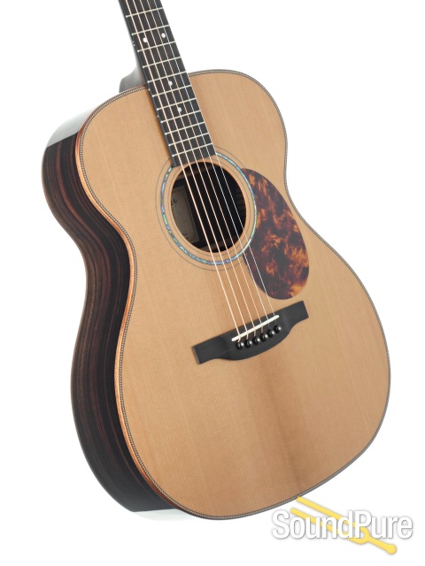 The OM Hybrids from Boucher never cease to amaze us. Bright and overtone rich with fast, comfortable, effortlessly playable necks without fail. The Master Grade and Vintage pack appointments are a formidable combo playing modern leaning koa binding and abalone rosette with vintage-style headstock design, tuners and capping it all of with a torrefied Master Grade Adirondack Spruce top!