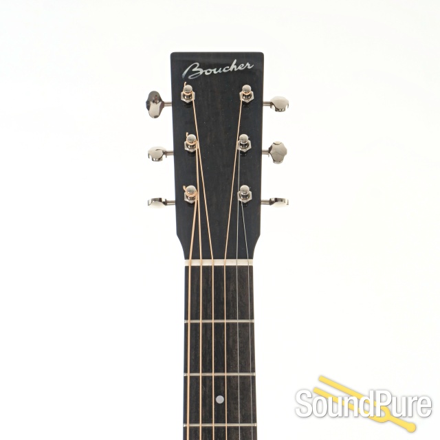 The Boucher SG-52-BV is a beautifully powerful dreadnought built for players who want clarity, headroom, and long-term tonal reward. Its AAAA Adirondack spruce top delivers bold projection and dynamic responsiveness, enhanced by forward-shifted, hand-scalloped bracing that feels lively and immediate. The one-piece South American mahogany neck and ebony fingerboard offer a smooth, confident playing feel, while maple binding and herringbone purfling add understated elegance. Finished in high gloss with Boucher’s meticulous attention to detail, this SG-52-BV is a serious, heirloom-quality investment—crafted to open up, mature, and inspire for decades to come.