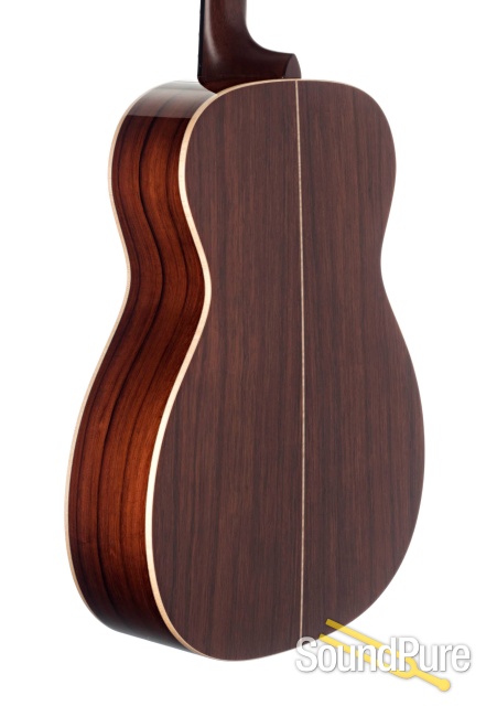This guitar is one that keeps me up at night. The Madagascar Rosewood gives the guitar a beautiful bright tone that makes the guitar very articulate. You can hear every note in the high end with sweet clarity. The bass range fills out the tone of the guitar but doesn't muddle the sound. This is all tied together with the wonderful resonance you get from the AAAA Adirondack Top. It truly is a finger style dream!