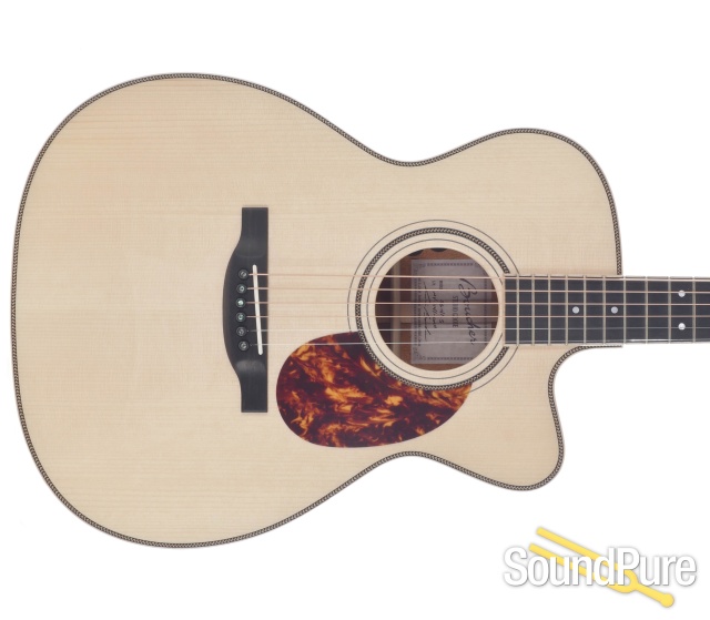 Robin Boucher has sent us yet another wonderful Studio Goose guitar that is ready to be heard and hopefully recorded soon! This OM has all the cut you'll ever need and is warm without losing clarity. We've got some absolutely impeccable AAAA graded Adirondack top with beautiful light colored South American Mahogany on the build that looks crisp and clean without being too over the top. This OM Soloist's best qualities are certainly the feel and sound over the cosmetic appointments and you'll know the second you slide your hand around the neck that this is one of the most comfortable playing flattops you'll come across. If you're a fingerstyle player or flatpicker who wants an insanely good lead guitar with access to the upper frets give us a call about this exceptional OM from Boucher!
