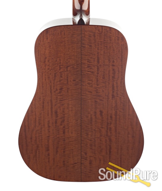 What. A. Guitar. From looks to sound, this is the finest 'hog dread we've seen in a good while. We love the Country Boy Deluxe package, from the figured Mahogany on the back and sides to the burst to the Cocobolo binding here, there, and every where. Dry and immediate, punchy and sustaining--this thing is like the fantasy version of every D18 you've ever imagined. Aside from a crack on the bottom side of the guitar that our luthier successfully patched (can't feel it, can't hardly see it), the super-clean used condition is incredible given the guitar's been around for almost a decade. if you're looking for a Mahogany dread to flatpick, you'll be hard pressed to find something better sounding (or downright prettier!) than this dressed up Country Boy!