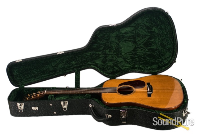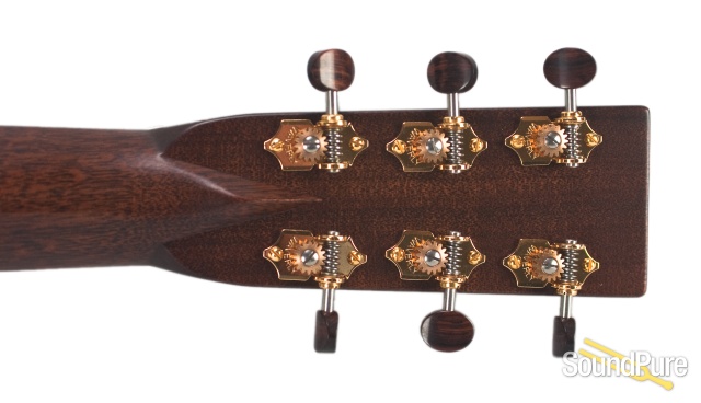 Mahogany guitars are often looked at as poor cousins of rosewood guitars, but we politely disagree, dressing the Country Boy in classic appointments such as ebony fretboard and bridge, wooden rosette, tortoiseshell binding and nickel Waverly tuners. We also consider it worthy of the same diamond volute that we use on the back of our Vintage Dreadnought peghead. In addition to selecting only the finest quartersawn and matched South American mahogany backs and sides, the Country Boy Dreadnought is appointed with an Adirondack spruce top (Sitka spruce is a popular option for this model).