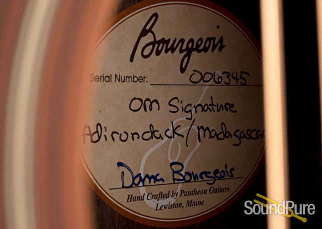 We started this model as a Dreadnought and then had a request for it in an OM shape. It has since become a very popular model. In appearance it is subtle, elegant and refined in tone it is everything and more that you can get from a Dana Bourgeois OM. For the DB Signature model, designed a new rosette and herringbone purfling to compliment his earlier design of the Dana Bourgeois backstrip. He also decided to pick his top and back woods primarily for tone. The Adirondack and Madagascar Rosewood he chose for his DB Signature Woods may not be the most pristine examples of those species. But we can guarantee that they are some of the best sounding.
