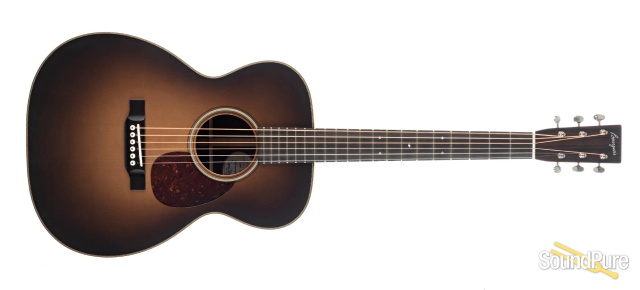 OM, 14 Fret 25.5” scale: You can think of the Vintage OM as a smaller version of our Dreadnought--or maybe it's the other way around. Because of its characteristic superb balance, clarity of voice, and sustaining top register, the OM is often thought of as the quintessential fingerstyle guitar. It's not surprising, though, that more than a few players appreciate these same characteristics not only for flatpicking but also for a variety of other applications. We scallop both sides of the X brace on our OM. This provides the” looseness” required in a smaller guitar to produce a clear, strong bass response, and power and projection that belies its size.