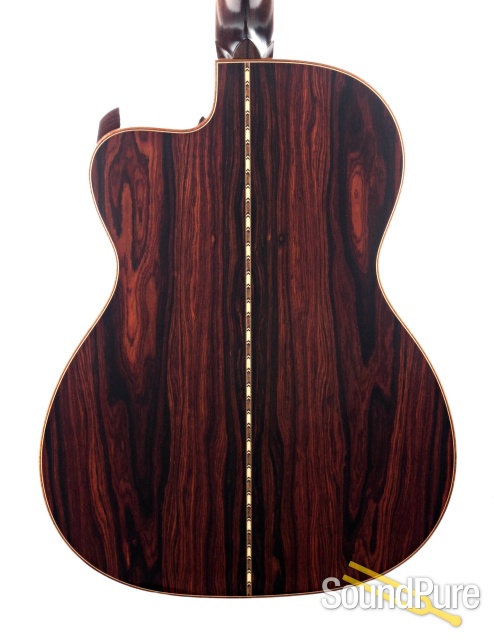 Absolutely tremendous.  The already fantastic OMS design (12 fret OM) has reached the highest of heights in this model with the addition of a cutaway, large soundhole, and premium tonewoods.  Open and far reaching as well as intimate and impossibly responsive, it's simply mind boggling how downright good it feels to play this guitar.  Every note is truly an inspiration.  The fundamentals are clear but the overtone content is, too--hanging and sustaining in perfect contrast to the underlying purity of tone.  Is it surprisingly comfortable for its sound or surprisingly strong and commanding for something of its size?  No need to figure this perfect paradox out--just play it and everything else falls away!
