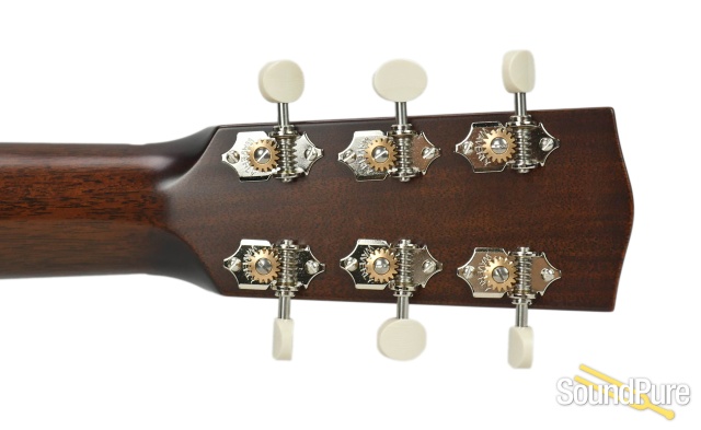 Another flawless instrument from Bourgeois! The fit, finish, and feel alone are enough to stun. But the voice on this short scale, slope shoulder, Adirondack/Mahogany instrument is capable of beguiling just about any player, working in any style. The slight loss of articulation that happens in the move from a long scale to a short scale is wonderfully balanced by the Addy's crisp, clean response and insistent sustain. In turn, the warmth and gutsy-ness (if you push it!) is supplemented by a gorgeous set of Mahogany and its glowing, direct response. Truly versatile in feel and voice!