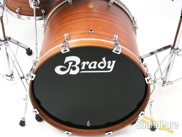 The Brady Drums five piece kit made from Spotted Gum with a natural satin finish was produced using a revolutionary method developed by Chris Brady in 1988 to create thin ply shells that have a solid-wood sound. The Spotted Gum kit features two floor toms, two rack toms, and a 24 inch kick drum. The drum sizes are 7x10 rack tom, 8x12 rack tom, 14x14 floor tom, 16x16 floor tom, 16x24 kick drum. The snare used in the video was a Brady Spotted Gum 5.5x14 snare drum. We also only used the 7x10 inch rack tom and the 14x14 inch floor tom. Thanks to Drummer Devin Fuller, Organist Mark Wells, and SoundPure's Jared Wofford for the sick tune. To learn more about the drum kits that SoundPure now carries, call us today or email drums@soundpure.com. 888.528.9703. or 919.682.5552. The drum selection is available on Indoor Storm's website.