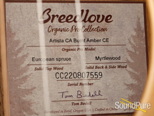 A connoisseur’s guitar, at an astonishingly affordable price. While the Artista series sits at the top of the Organic Pro line, it remains within reach, especially the Concertina. A short scale European maple neck joins the all-solid Oregon myrtlewood body and European spruce top at the twelfth fret, offering a combination of easy playability, expressive tone, and visual beauty. Small body guitars—long treasured by serious players—are becoming increasingly popular as more and more people discover the size and depth of sound that can come from a comfortable instrument. The Artista Pro Concertina Burnt Amber CE—with its arresting burnt amber burst finish on both the soundboard and up the back of the neck—is an investment in joy. Experience the Breedlove difference at its finest!