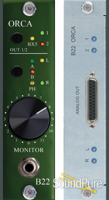 Couple the new B22 ORCA Control Room Monitor daughter card with a B16 Mothership and a B4 MIC/LINE input card and you have an amazing audiophile desktop recording rig. Or, combine the B22 ORCA with a B16 and a BAD4M and you have the ultimate 4 in x 4 out mastering solution.