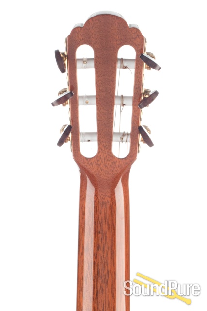 That comfy scale length isn't the only thing that makes this one special--name another time you've seen a flawlessly quartersawn, perfectly seasoned piece of East Indian on a back like that! The top, too! Rotate the guitar ever so lightly looking down at that Carpathian and you might get lost in the downright magical levels of the three-dimensionality in that grain. But all of this in service of the voice--all of the color and detail you could ever ask for from a classical paired with all of the authority and punch a traditional archtop design has to offer. Absolutely stunning!