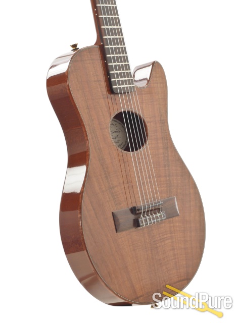 There's a particular warmth and presence not typically found in Nylon string instruments that immediately embraces you and consumes you all over. These Buscarino's are as much a delight to play as they are to look at. The fretwork is absolutely impeccable and the neck is a joy to play all up and down. Plugged in is sonic bliss, an absolute plethora of sweet and glassy sounds that just bounce around the room. The Buscarino's are commonly regarded as some of the nicest Nylon stringed instruments in the world and there's no argument to the former here - these are absolutely incredible pieces. Rather than immediately blowing one away, this will draw you in and keep your attention with demand.