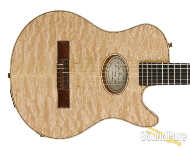 This Starlight totally blew me a way when I pulled it off the wall to write a review. This is a guitarist's guitar, in the way that Paco De Lucia is a guitarist's guitarist, plain and simple. There's such a wonderful and delightful warm tone when this guitar is run through a transparent acoustic amp, you get the feeling that this instruments' true voice is the one it'll have when its onstage. The figured maple top is absoutely gorgeous, and although this is an instrument that deserves to be played, it is also a work of art worth showcasing.
