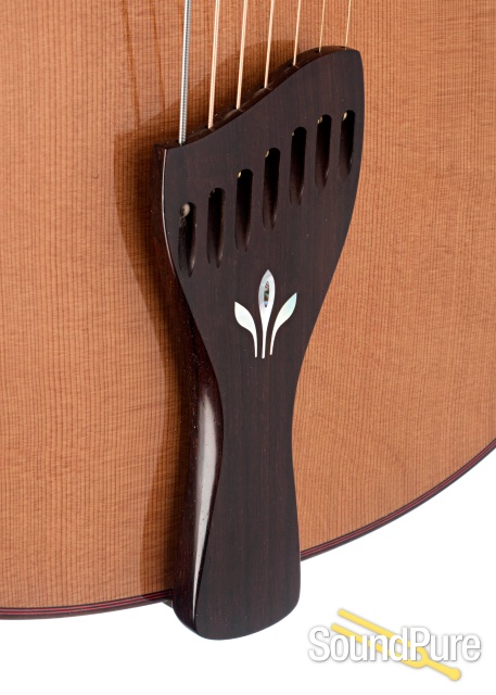 This is the ultimate in 7-string perfection, and it is truly an honor to have this instrument in our inventory. Up until now, it has been pampered in a private collection. The Buscarino 7 String features wood that is truly “master grade” and produces a huge warm sound that must be heard to be believed. Its acoustics are truly awesome. The oval hole design (originally conceived of by Orville Gibson on his first archtop guitar) allows for maximum volume and projection. The warmth of this cedar is simply unbelievable. It's grain and tone epitomize the symmetric potential of nature. The rosewood is as regal and rich as it comes, imbuing every note in this guitar's wide frequency range with delicate overtones.