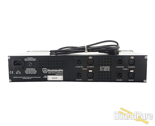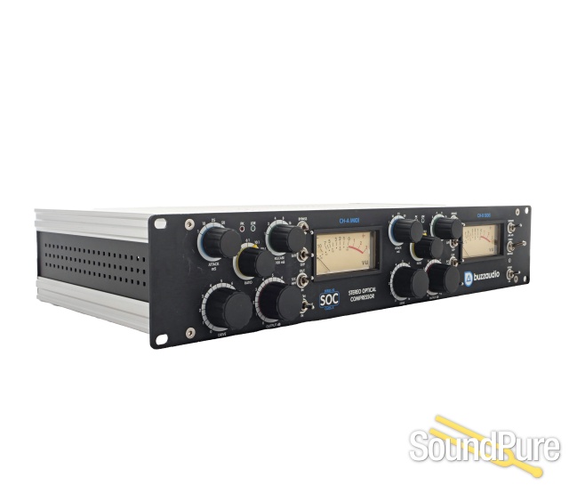 Due to popular demand Buzz Audio announces the Series 20 SOC, a Class A version of their well known SOC-1.1 compressor. The Buzz Audio SOC-20 includes additional features suggested by our users including a fully balanced XLR side chain insert point, extra ratio and attack settings and a sidechain high pass filter (for less low frequency compression when used on the mix buss). At the flick of a switch, the SOC-20 converts to a MS (Mid Side) compressor allowing you to compress and/or re-balance the sum and difference signals of a stereo mix. The side chain monitor function allows you to hear the MS signals and the side chain insert send can be used as a MS encoder output. Very very cool!