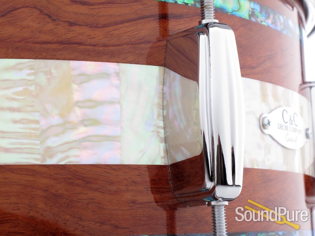 The abalone inlays are meticulously hand laid into place by Billy Cardwell and are a product of hours of labor and love. To round out the package, the inlays were placed inside a gorgeous bubinga outer veneer and finished with a gloss lacquer to really showcase the depth of the wood. Each of the abalone snares is a truly unique and one-of-a-kind work of audio and visual art.