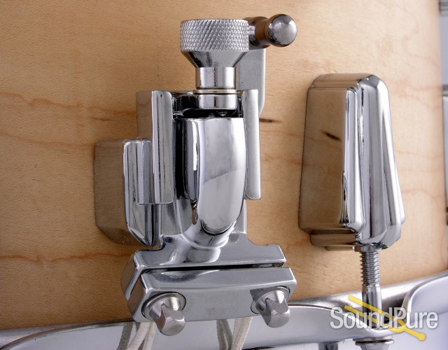This Gladstone series snare features alternating 7 plies of North American Rock Maple and Gum, our single-ended Deco Lug and proprietary Bread and Butter bearing edge. This edge allows for a more open and resonant tone. It also promotes more body than what is typical of a modern maple shell, making for a very musical and versatile sound. Finished with a natural satin finish and chrome hardware, this drum will be a comfortable fit for any live or studio situation. This snare is available for SoundPure's Try-Before-You-Buy Program, so if you want to hear how it sounds in your hands, shoot us an email at Drums@SoundPure.com or call us anytime at 919.682.5552. Thanks for watching!