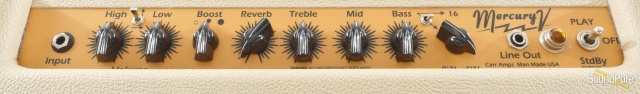 The Mercury V is highly touch sensitive with a huge range of English tones from 60s aggressive clean thru 70s rock into 80s and 90s tasty crunch. Our built in attenuator delivers real power tube overdrive at whisper levels retaining the feel and juice of full volume fun. Like recording on your computer? Just plug the Mercury V line out into your A/D interface and go! The Luscious Spring Reverb, full ranging Overdrive options and effective tone controls make the Mercury V an invaluable recording tool. Home player? Experience big amp satisfaction with domestic tranquility. Gigging musician? 16 burly watts in full power means the Mercury V is a commanding stage amp. Mercury V wins the six string triathlon ---- Home - Studio - Stage.