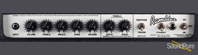 Long before the birth of Carr Amplifiers, I spent years playing, repairing, modifying and intently listening to classic guitar amps. The Rambler was one of my earliest signature designs, and today it is still one of our most popular models. Why? It's no accident that the Rambler succeeds in delivering classic American 'deluxe' tone with dramatically expanded clean headroom, solid bass response and the option of 28 watt pentode or 14 watt triode operation. The Rambler simply reflects my desire to improve and refine the original concept of an appropriately powered 1x12 club amp with reverb and tremolo. Rambler owners describe their amps as being warm, full and round, with a surprisingly high threshold of clean tone, (which also makes the Rambler uniquely suited to virtually any overdrive pedal ever built). The Rambler is considered by many to be the quintessential club amp, voiced to meet the needs of virtually any player, and all types of music.