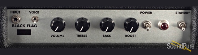 An amp with two personalities and both of them sure do have a mean side! The Black Flag is a perfect club gig amp, loud, open, clear tones no matter what voicing section you're in. When pushed from the front end, the overdrive character distorts in a harmonically rich, not quite over-the-top growl. The clean sounds are spanky with lots of clarity in the bass too! Simple controls, and simply great sounding, a great grab and go amp that won't dissappoint.