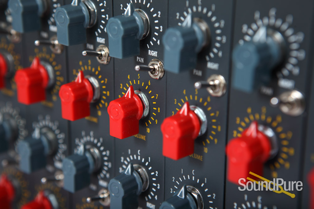 In addition to the mixer section, the unit has a full featured Control Room section including Talkback, Speaker switching, Mute, Mono, Dim, External input (also used as an insert point), and separate Control Room and Stereo Buss outs. Mixers are easily expandable to 32 channels or more.