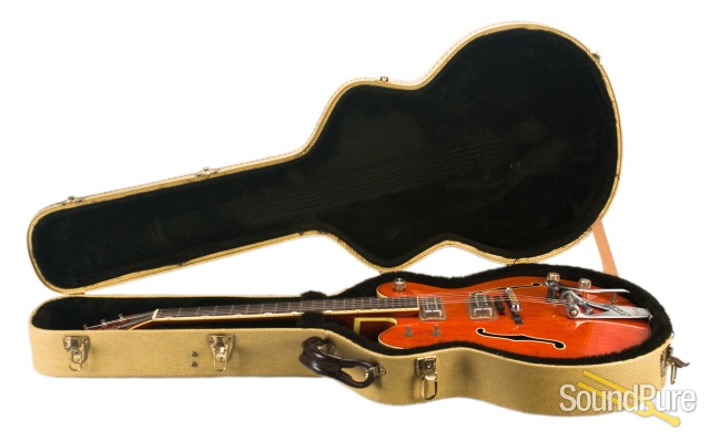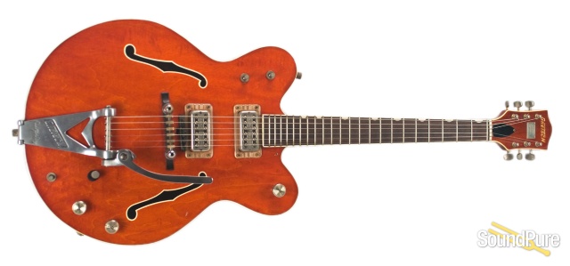 A truly classic instrument transported to our showroom from the golden years of rock and country. It plays and sounds lovely and the pickup configuration has a huge range of tonal color to offer. I was able to dial in tones that were appropriate for jazz, country, and really any style a killer clean tone might be needed for. It is very responsive and a pleasure to play in both flat picking and finger picking styles. The neck is great for quickly grabbing some unconventional chord shapes as well. This guitar needs a home with a player looking for that classic Chet Atkins Nashville tone in a vintage and well-playing package.