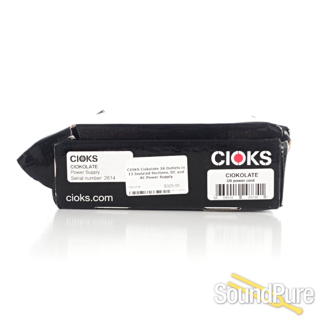 CIOKS CIOKOLATE power supply will power several high current digital pedals, high voltage 18, 24 or even 40V pedals, one or two AC pedals, one or two Radial Tonebone pedals or simulating a dying battery it will power your old favourite fuzz or overdrive. On top of all that it will of course also power all your standard 9V pedals from its many isolated outlets.