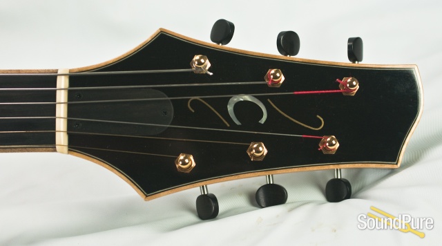 Hand carved engleman spruce top. Flamed maple back and sides. One piece flamed maple neck. Ebony fingerboard, peghead overlay, pickup cover, bridge, tailpiece, and finger-rest.