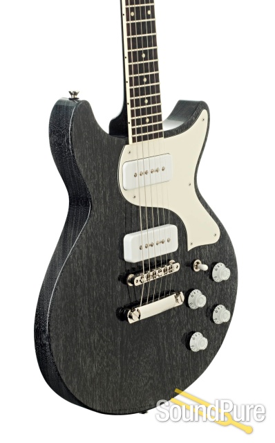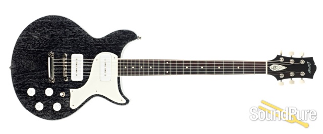 Vintage inspired tone, and very handsome appointments on this Doghair 290 DC with white knobs, cream pickguard, ivoroid fingerboard binding, and white Lollar P90s!