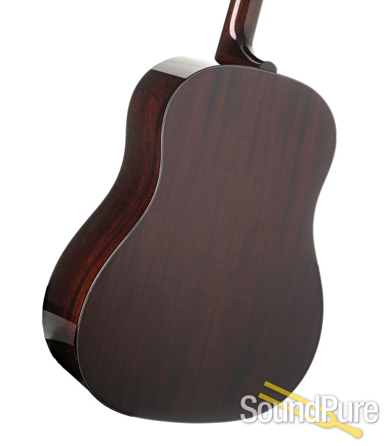 The Collings Jumbo, or CJ, is our version of the classic slope-shouldered dreadnought, a shape that has enjoyed renewed popularity in recent years. While the CJ is similar in width and depth to the traditional dreadnought, it has a distinctly different tone. Despite its large size this model works well with the optional shorter string scale, resulting in a somewhat percussive bottom end ideal for acoustic blues or other styles that benefit from a more controlled bass response. Of all the Collings body shapes, this is the one most often requested with a sunburst top finish, and the wide range of wood options, neck widths, and string scales allow the CJ to be many different guitars to a wide variety of players