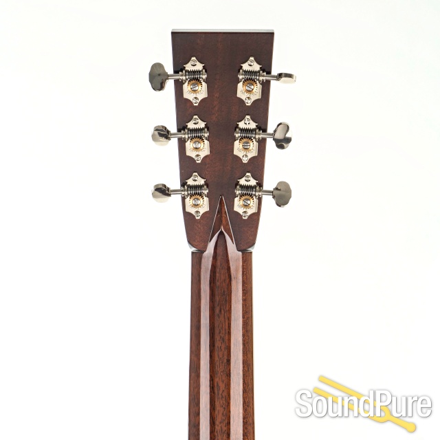 Our Traditional series instruments (T) offer a slightly looser, more “broken in” feel and tone, featuring a rounder high end and fuller low midrange, along with our Traditional aesthetic appointments, such as gold MOP inlays and custom wood purflings and rosette. Traditional models also feature an ultra-thin nitrocellulose lacquer body finish, no tongue brace, and a unique neck construction designed to complement the looser feel and voicing, along with our Traditional neck carve. Due to the vintage-inspired vision for these guitars, Traditional instruments are offered with limited custom options.