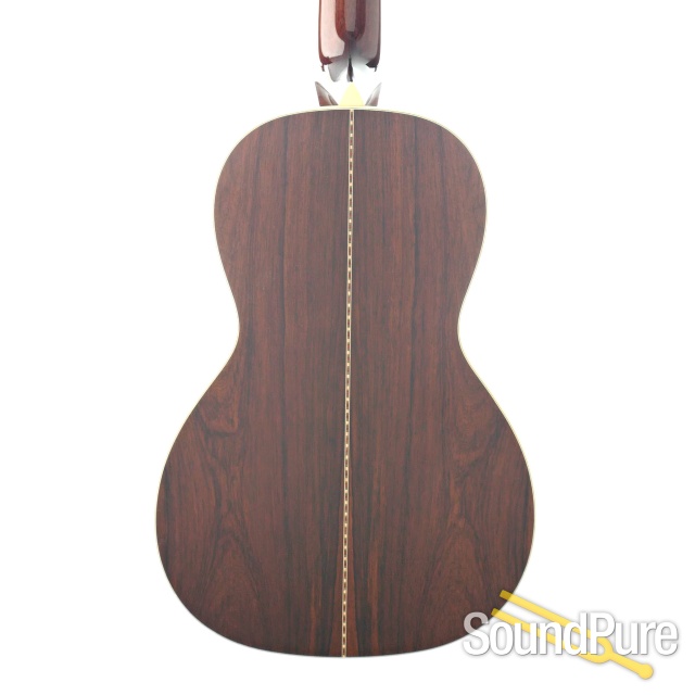 Newly available in the "Deluxe" model variation, this Parlor is outfitted with custom made wood purflings and features a Madagascar rosewood back and sides. With a look as multifaceted as its tone, the uncommon sound of this small instrument has a nuance, warmth and focus that stays in your ear long after the music stops.