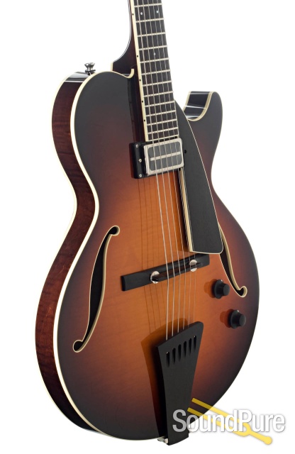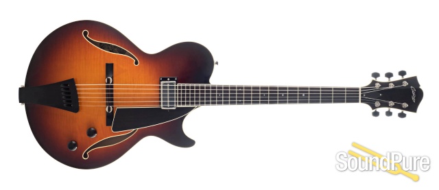 With fully-hollow laminate construction, a single Lollar Charlie Christian pickup, and an archtop-style floating tailipiece and bridge, the Eastside LC archtop has been designed with vintage tone in mind for the professional jazz player. Now available with upscale appointments, the Eastside LC Deluxe features a bound neck and peghead along with our custom ebony "top-hat" knobs.