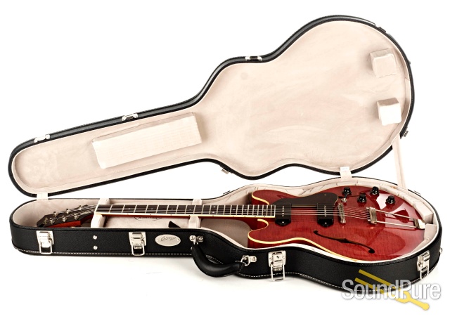 Collings fully hollow electric equipped in Aged Faded Cherry with Lollar Dog Ear P90's.