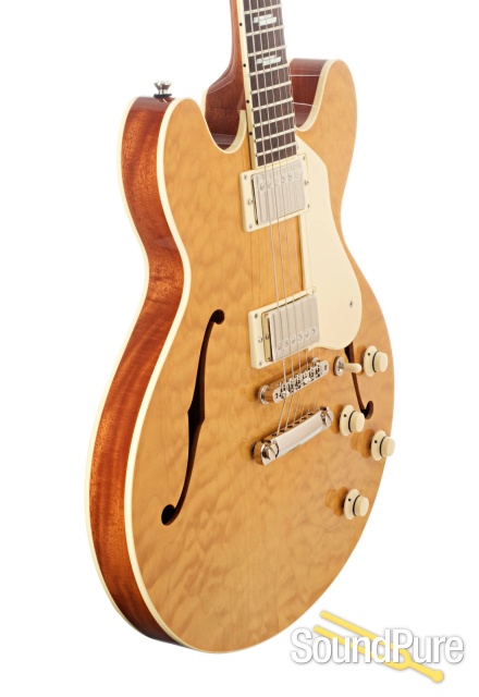 This I-35 is extra deluxe; featuring a quilted maple top, parallelogram inlays, and 1-Ply ivoroid pickguard!