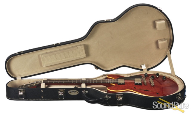 The I35 LC is the result of a custom laminated construction technique that Bill Collings and his R&D team developed in pursuit of the best tonal qualities of vintage semi-hollow guitar design. When crafting instruments designed to be used electrically at higher volumes, the resonant qualities of a guitar need a high degree of focus to achieve some of the classic semi-hollow guitar tones. The I35 LC is the first of a line of laminate instruments designed to respond acoustically in perfect harmony with their electronics. Custom crafted in house for each guitar, the Collings laminate line has provided another unique way for us to voice our instruments for superior response and tone. The I35 LC features a custom laminate maple top, sides and back and an all mahogany neck. The I35 LC is among our most articulate and versatile electric models.