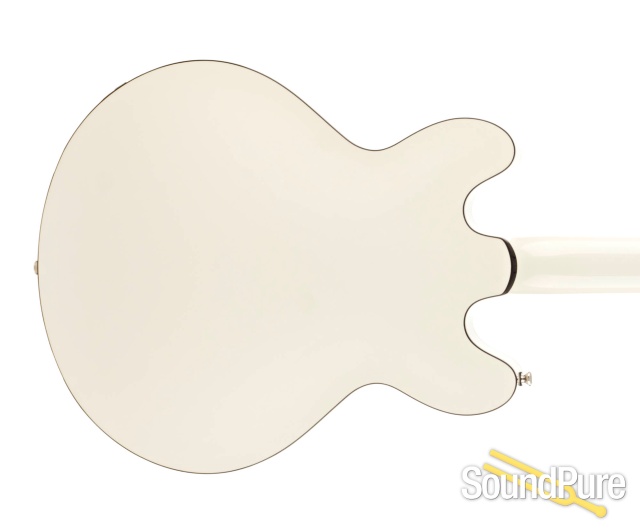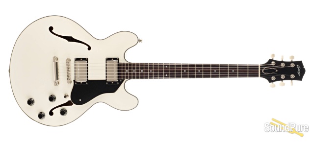 Accompanied by Deluxe Grained Ivoroid tuner buttons, Tortoise binding, and B/W top purfling, this "reverse tuxedo" Olympic White I-35LC is absolutely stunning.