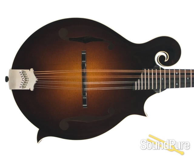 The MF is our satin finish F-model with simplified appointments. With a fully carved Adirondack spruce top and maple back and sides, the MF is built with the same quality construction as our fully-appointed models. These instruments produce the rich, woody tone that one would expect from a professional quality mandolin at an affordable price.