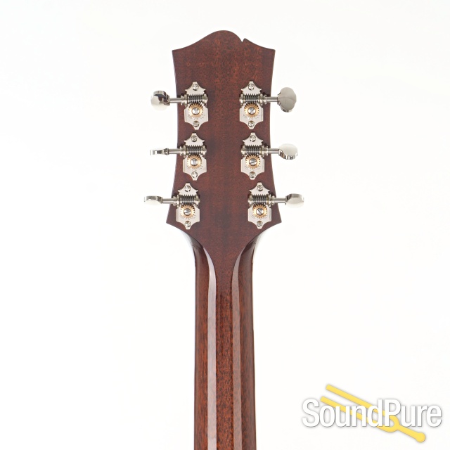 The SJ is our version of what is commonly called a Small Jumbo. Although the 16-inch lower bout is slightly wider than a dreadnought, and the sides almost as deep, the tight curve at the waist creates in a very different sound chamber. SJs, especially examples in maple, typically have a more pronounced midrange response when compared to a dreadnought, making them ideal candidates for a rounded cutaway. Players looking for the bass and overall volume of a large guitar, but with lots of treble clarity and midrange crunch, often find just what they need in the curvaceous SJ.