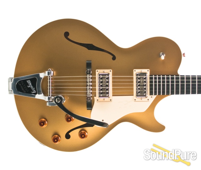 Inspired by the classic sounds pioneered by players such as Chet Atkins and Eddie Cochran, the fully-hollow Statesman LC captures the vibe and tones of this iconic era with a trestle-braced maple laminate body, Bigsby B3 vibrato and TV Jones Filtertron pickups.
