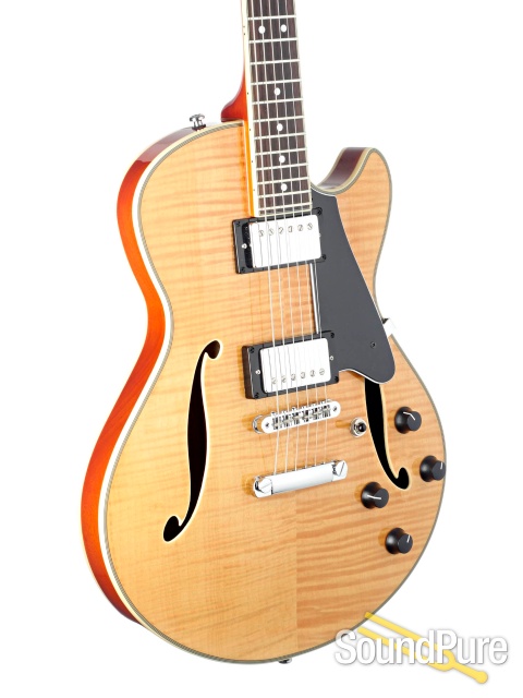 The GCS-1 is a solidly built semi-hollow guitar designed for musicians looking for a well-made practical and roadworthy musical instrument. Inherently versatile, it can produce a myriad of tonalities suitable for blues, rock, country, and jazz playing. It adorns a laminated flame Maple top with a laminated Sapele back, and the sides/internal block structure are routed from a solid wood core. This design yields a balanced and even articulation with enhanced sustain characteristics. Included is a TKL hard-shell case. A version with a U.S. made Bigsby vibrato is also available.